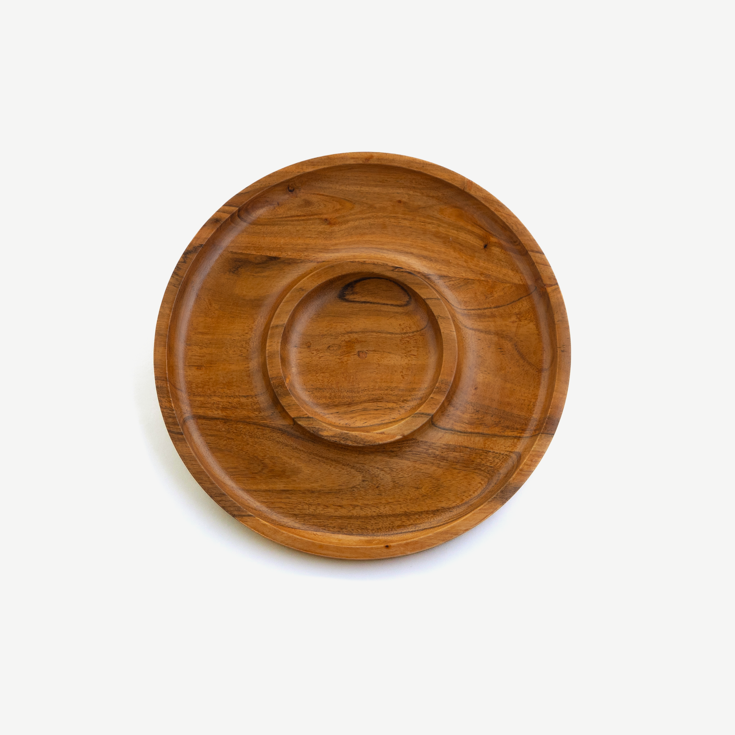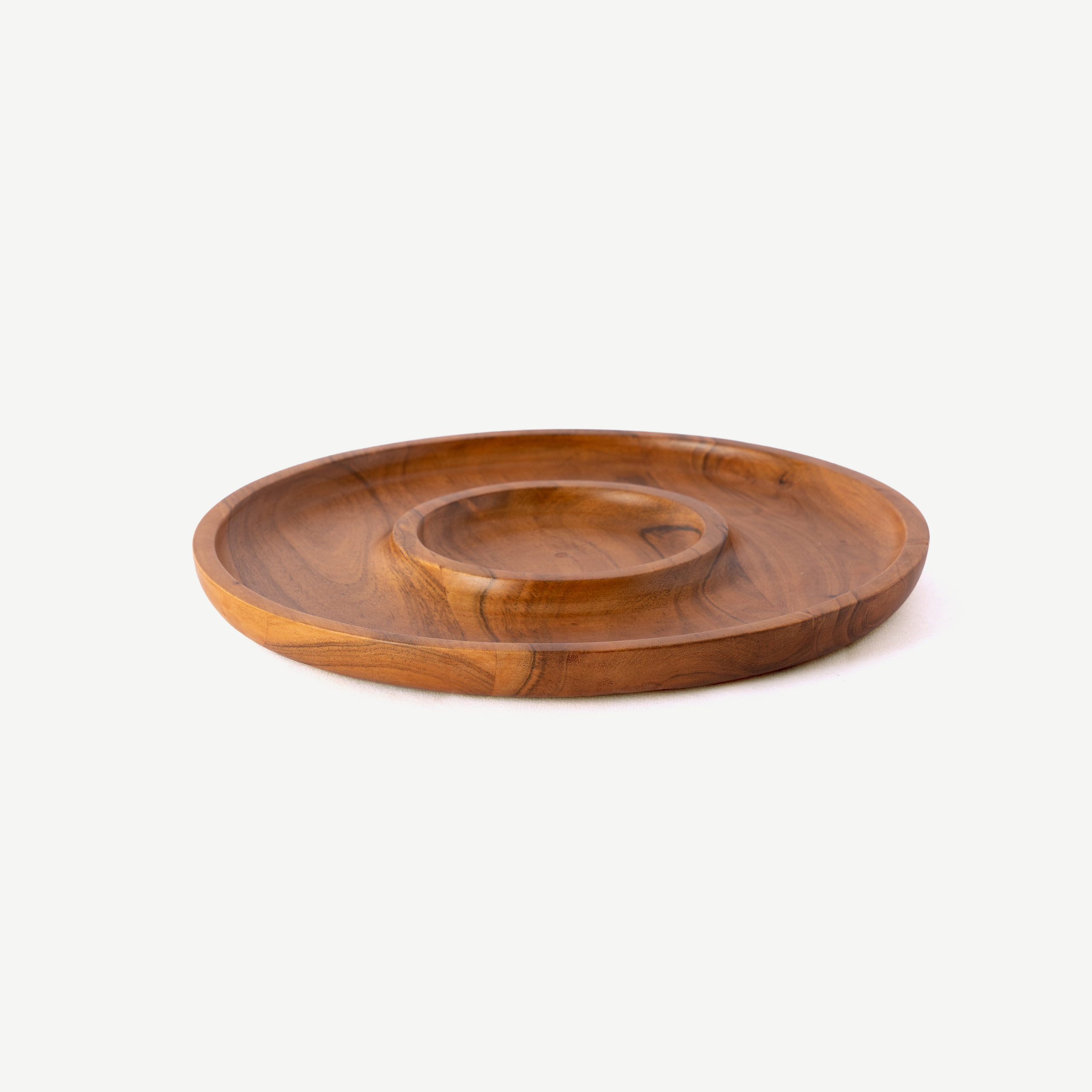 Hand-carved from solid acacia, each plate displays stunning natural grain patterns—streams of molten honey blending into deep cocoa swirls. Expertly sanded and polished to a silky finish, the piece is smooth to the touch while maintaining the raw elegance of the wood. Gentle, functional curves around the edges keep snacks in place while adding sculptural beauty to the design. Every plate carries the signature of true craftsmanship, and with our flexible production capability, it can be custom-crafted and exported globally, ensuring this artisanal serveware reaches kitchens and tables everywhere.