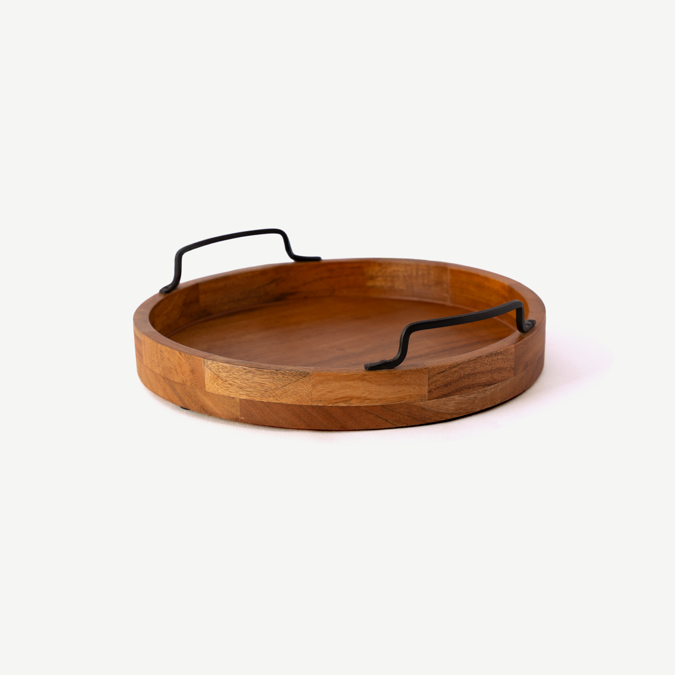 The Acacia Noir Handle Tray redefines functional luxury, blending sleek modernity with the natural warmth of acacia wood. This acacia tray is designed to feel effortlessly elevated—its smooth wooden base paired with bold black handles creates a striking balance between sophistication and ease. Whether it’s serving drinks at a lively gathering or resting gracefully on a coffee table, this wooden handle tray adds an upscale touch to any space. Crafted with global standards in mind, it can be manufactured with low MOQs and exported internationally, making refined craftsmanship accessible for brands and retailers around the world.